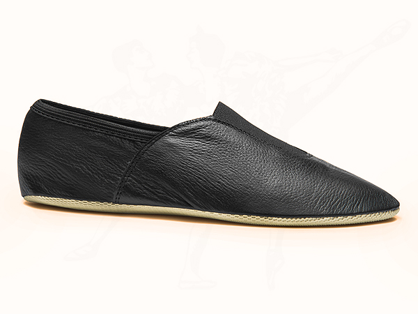 Gymnastik- und Kunstturnschuhe aus weichem Nappaleder. Diese praktischen Turnschläppchen sind extrem leicht und bequem. Der breite Gummieinsatz am Rist sorgt für perfekten Halt. Das weiche Leder und die gepolsterte Sohle passen sich dem Fuß optimal an. Die gerippte Gummisohle bietet hervorragenden Halt selbst auf glatten Böden. Perfekt geeignet als Kunstturnschuh, Gymnastikschuh, für die Turnstunde in der Schule oder einfach als leichter, rutschfester Hausschuh.